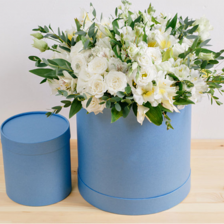 Niezwykle subtelna kompozycja utrzymana w odcieniach bieli, stworzona z lekkiej alstromerii, romantycznej eustomy, gałązkowych róż i naturalnych zielonych dodatków. To kompozycja, która wyraża czystość intencji, spokój i ponadczasowe piękno.  Doskonale sprawdzi się jako prezent na ślub, chrzest, komunię, a także jako gest wdzięczności lub delikatnego wsparcia.