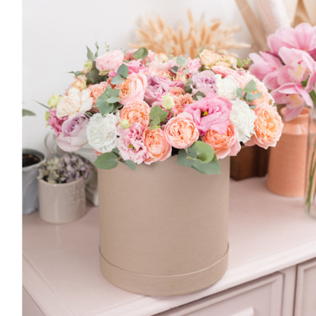 Subtelna i elegancka kompozycja, w której dominują gałązkowe róże, delikatna eustoma i trwałe goździki, uzupełnione świeżym akcentem eukaliptusa. To idealny wybór na każdą okazję – zarówno jako gest wdzięczności, prezent dla bliskiej osoby, jak i forma delikatnego wsparcia w trudnych chwilach.